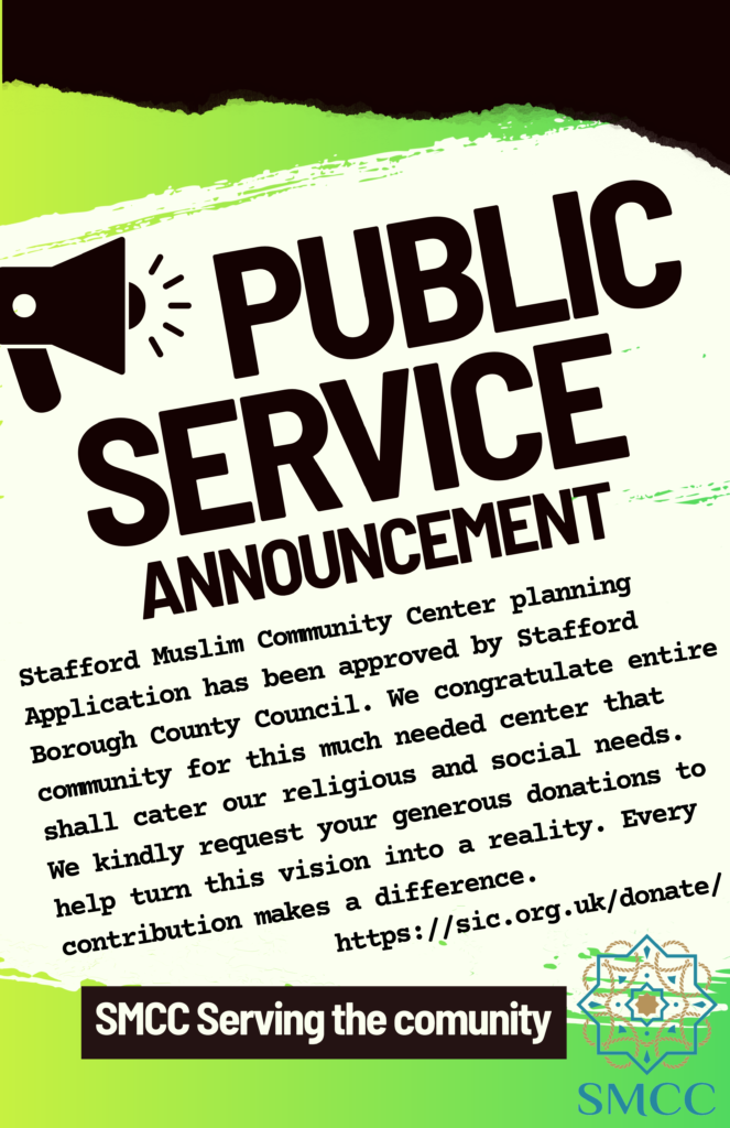 Registered Charity: Stafford Muslim Community Centre (Charity No. 1087413). Gift Aid Ref: EW01098. Your donation may be eligible for Gift Aid, increasing its value at no extra cost to you.